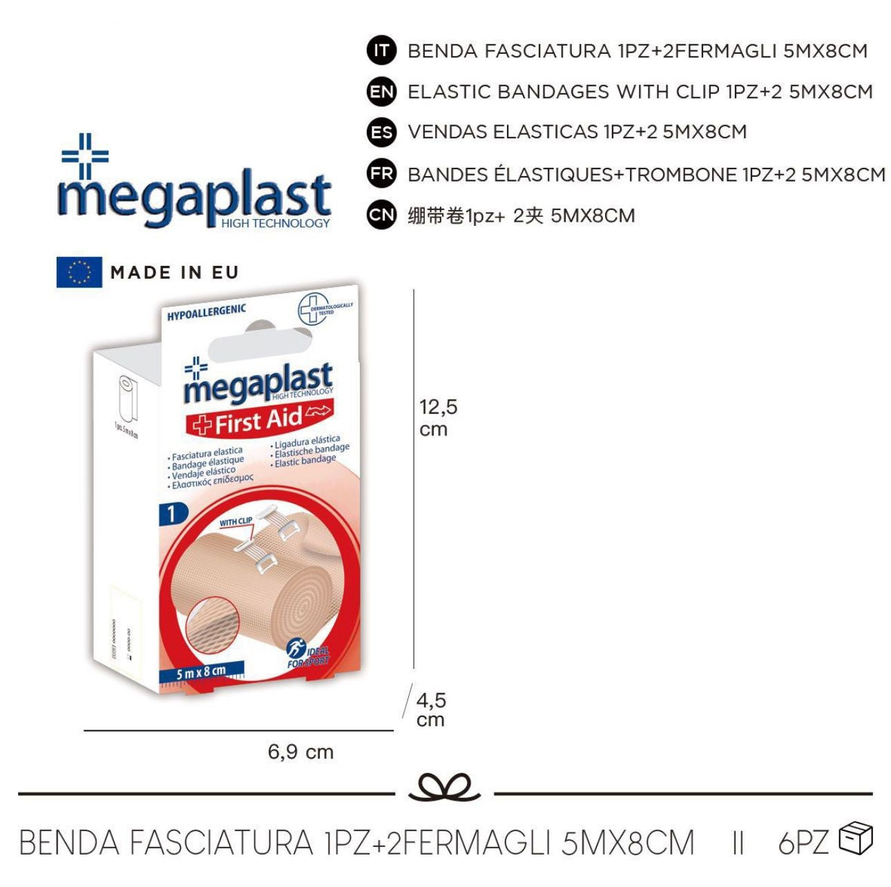 164225 Benda FASCIATURA ELASTICA 5m x 8cm + 2 fermagli